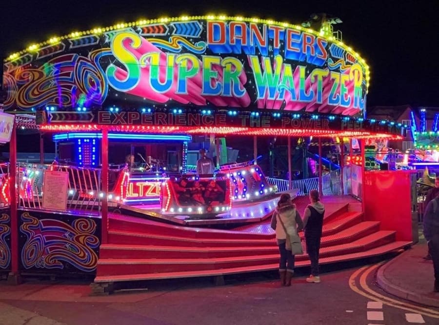 As is the case with many white knuckle fairground rides, the Waltzer comes complete with fairground music and lights, adding to the intensity of the experience.